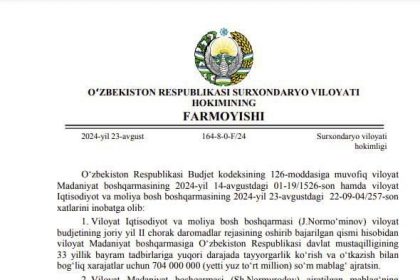 Ҳокимлик жорий йилги байрамни ўтказиш учун бюджет ҳисобидан нақ 1 миллиард 540 миллион сўм пул…