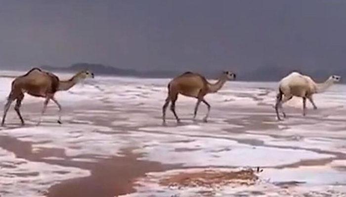Арабистон яриморолидаги чўлларга қор ёғди