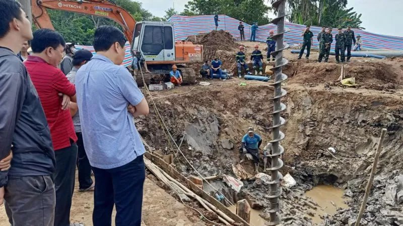Ветнамда расмийлар қурилиш майдонида бир бетоннинг ичига тушиб кетган болани қутқариш учун қаттиқ ҳаракат қилишмоқда.
