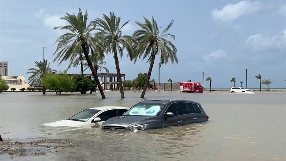 Ҳаммаси бир кун аввал қўшни Уммонда бошланди. Кучли ёмғир сув тошқинига сабаб бўлди. Камида 18 киши ҳаётдан кўз юмди. Метеорологлар минтақа учун ғайритабиий об-ҳаво чоршанба куни ҳам давом этиши ҳақида огоҳлантирмоқда.