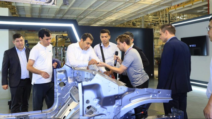 Делегация Чжэньцзян шаҳрида жойлашган, China Xiaou Group компаниясининг ҳамкори ҳисобланган BAIC Bluepark Magna Automobile заводида ҳам бўлиб, электромобиллар ишлаб чиқариш жараёнлари билан танишди.