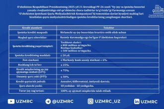 Ипотека кредити фоиз ставкалари +6 фоизга туширилди