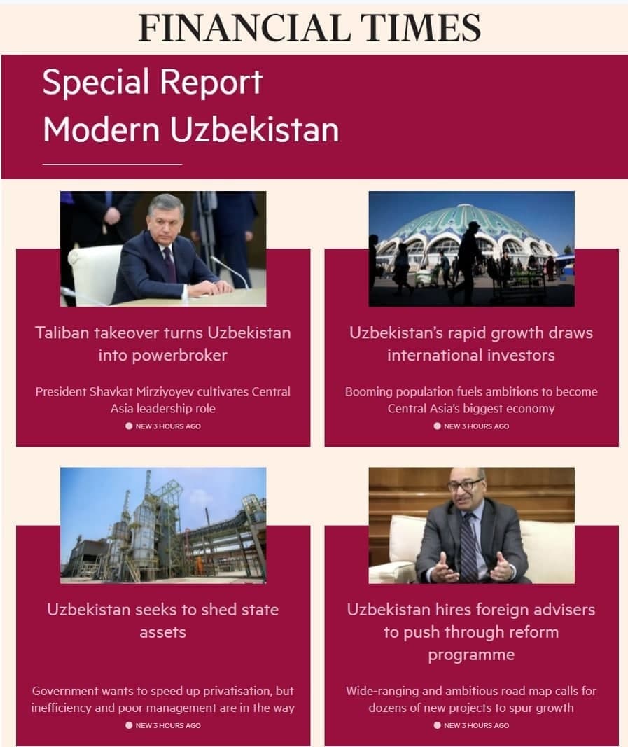 FT етакчи бизнес газетаси 30 йил ичида биринчи марта Ўзбекистонга бағишланган мамлакат ҳақидаги махсус ҳисоботини тақдим этди.