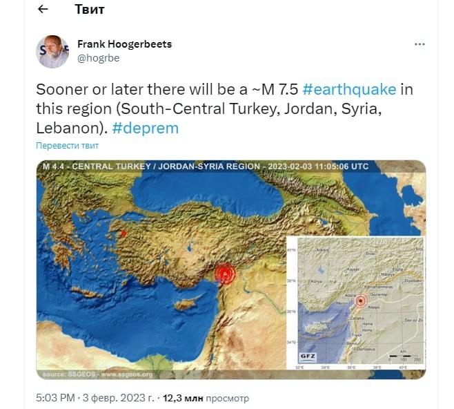 Сейсмолог олим Франк Ҳогербитс прогнозлари тўғри бўлиб чиққач, у яна ҳамдардлик руҳида Twitter’да изоҳ қолдирган.