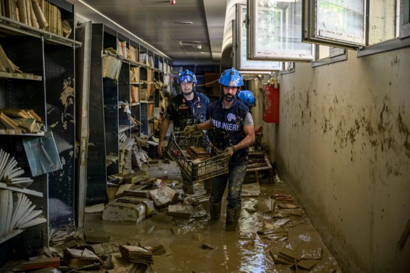 Италияда юз берган сув тошқини оқибатида зарар кўрган китоблар сақлаб қолинди