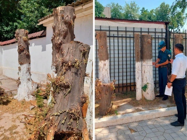 Кузатув камераларидаги тасвирларни ўрганиш давомида маълум бўлишича, дарахтлар 28 май куни мактабга туташ ҳудудни эгаллаган гараж хўжалиги вакили томонидан кесилган. Эълон қилинган суратда тахминан 2 метр бўлган 20 та дарахт устунини кўриш мумкин.