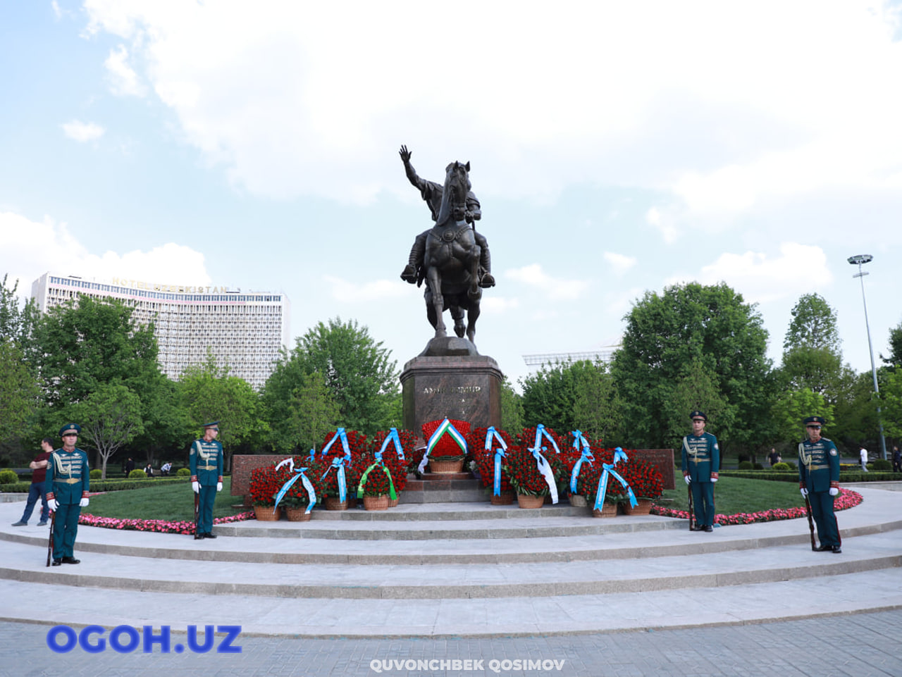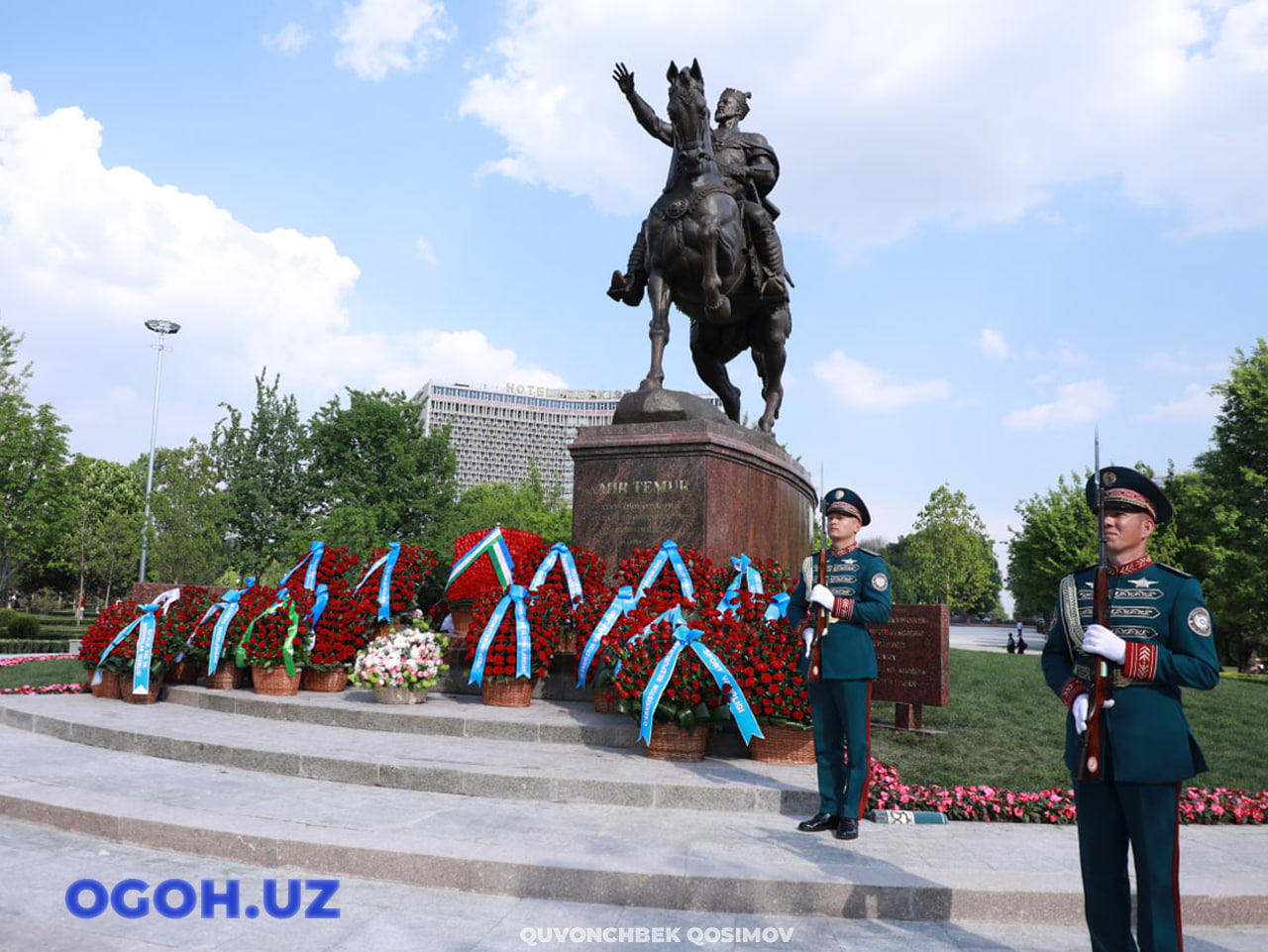 Маросим аввалида ҳарбий оркестр ижросида ватанпарварлик руҳидаги куйлар янграб, йиғилганларга ўзгача руҳ бағишлади. Шундан сўнг иштирокчилар томонидан буюк саркарда ҳайкали пойига гулчамбар қўйилиб, унинг беқиёс жасорати, юрт равнақи йўлидаги хизматлари ва бой тарихий мероси чуқур эҳтиром билан ёд этилди.